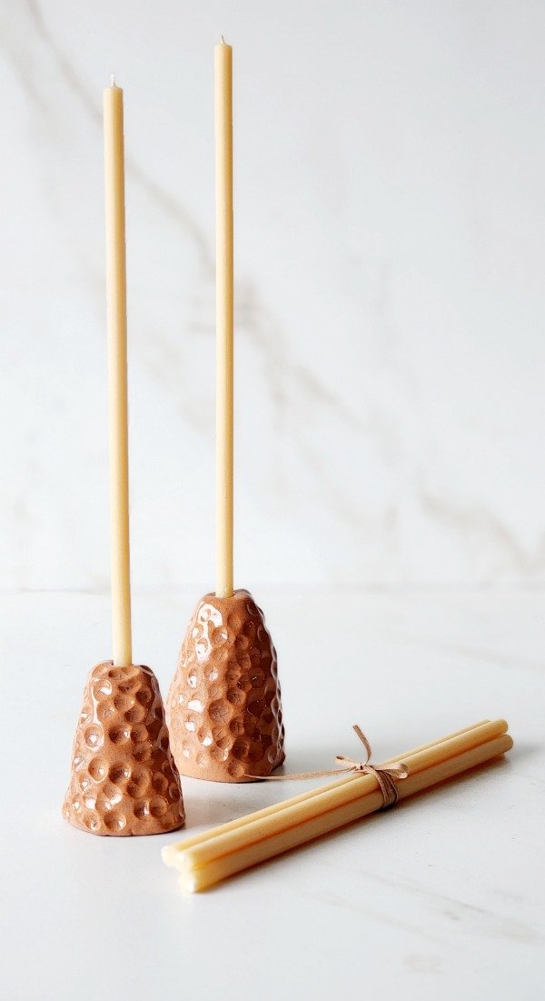 Set x 2 candelabros realizados en gres + 4 velitas espiga