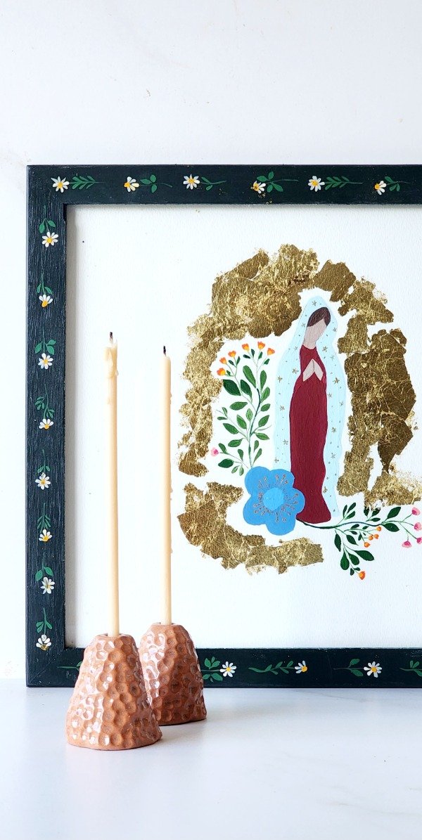 Cuadro madera pintado a mano..con dorado a la hija .sumando detalles y estilo a cualquier rincón..diseño único exclusivo kushkuy medida 34 cm x 34 cm