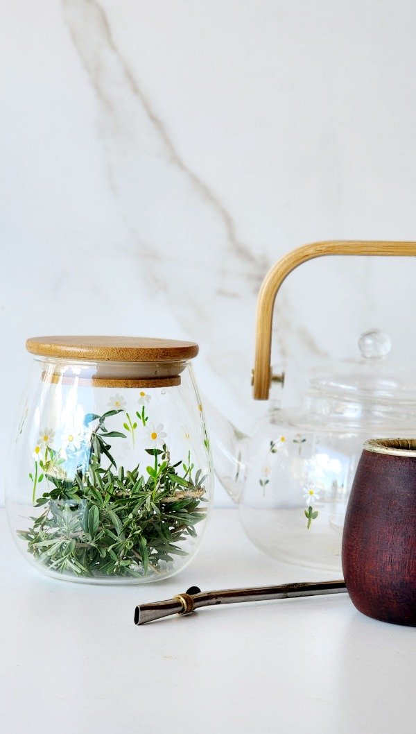 Frasco tapa bamboo y margaritas capacidad 400 cc aprox