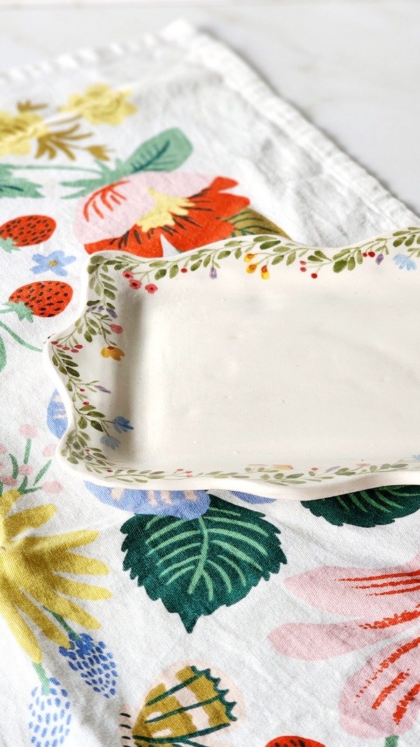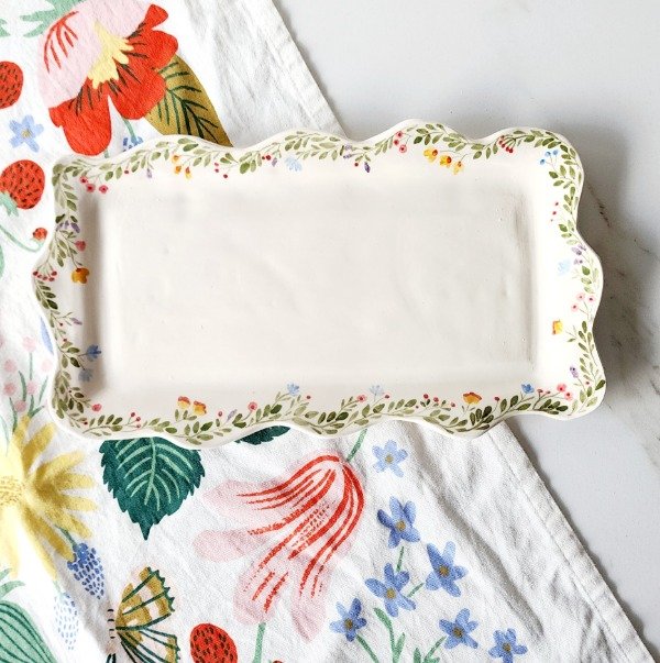 Bandeja modelada a mano ..terminación ondas y diseño mínimo de flores y ramitas medida aprox 30 cm x 16 cm