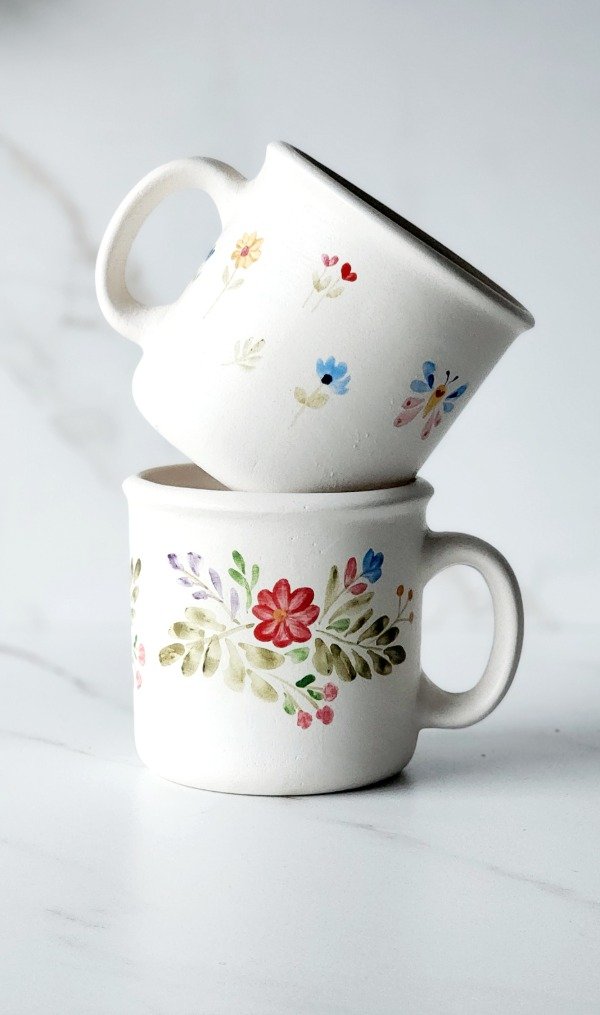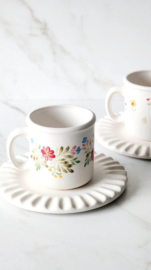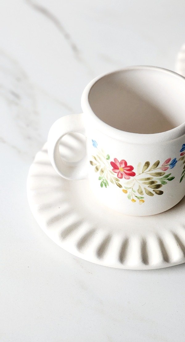 Taza 290 cc base mate natural pintura sobre mayolica