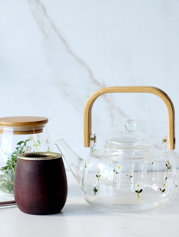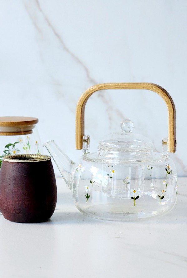 Tetera con filtro y manija bamboo margaritas capacidada 600 cc
