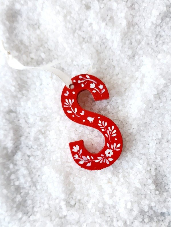 Inicial madera pintadas a mano con detalle de cinta natural pra colgar en el árbol..para personalizar un regalo ..la deco más linda !