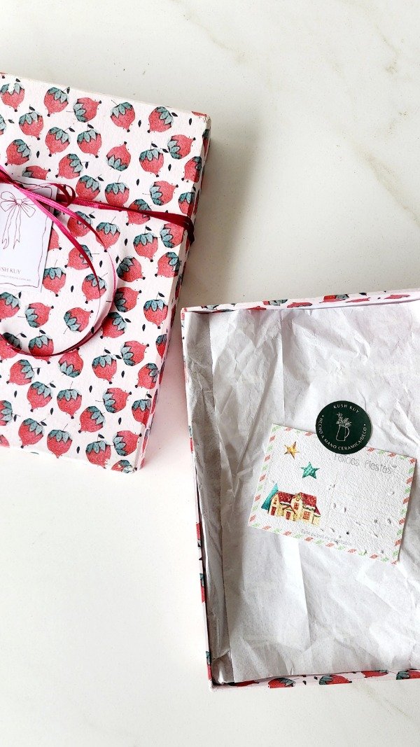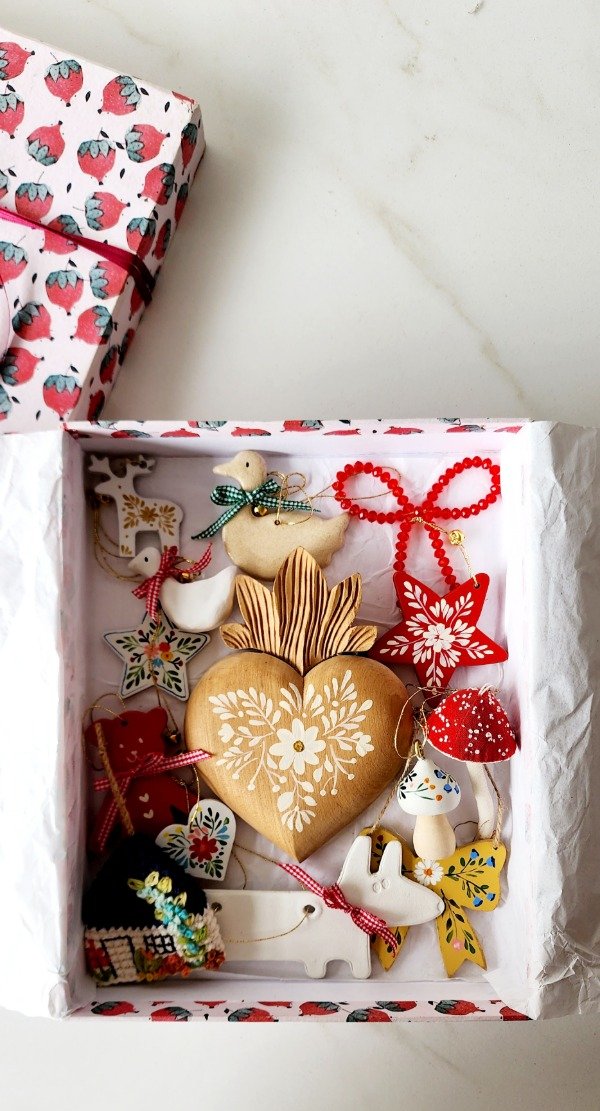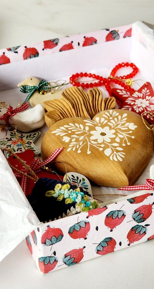 Caja xl 20 x 25 cm forrada a mano con ilustración exclusiva de regina ..contiene 14 tesoros