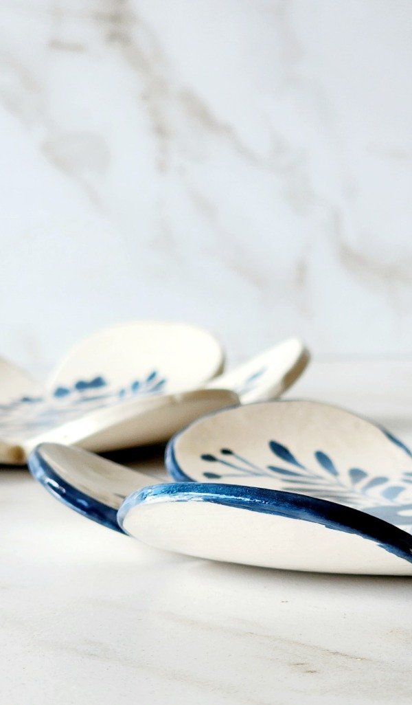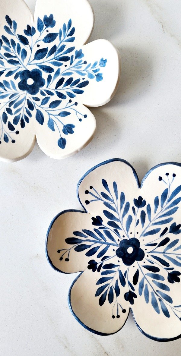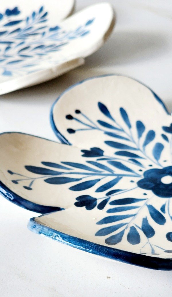 Plato forma flor diseño en azul diámetro aprox 17 cm