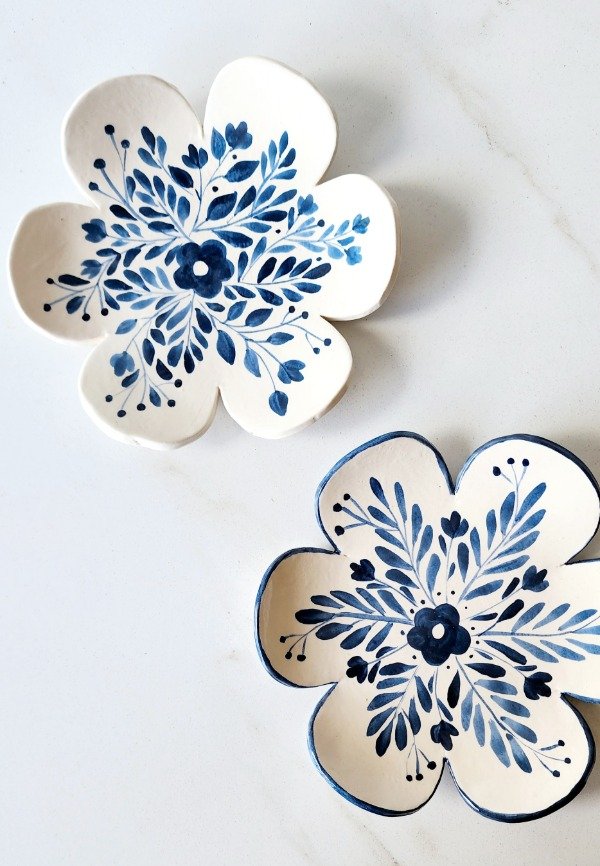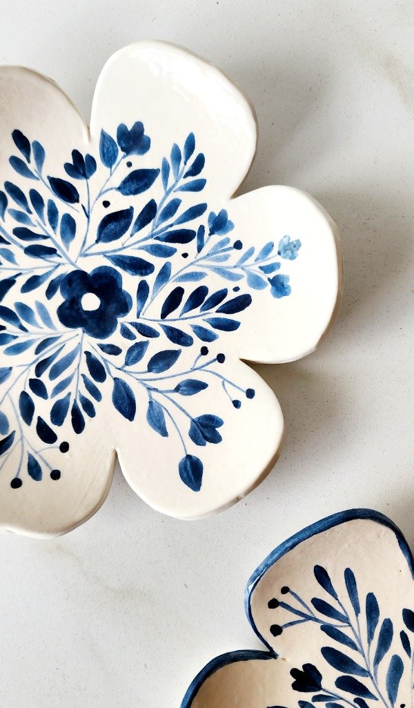 Plato forma flor diseño en azul diámetro aprox 17 cm