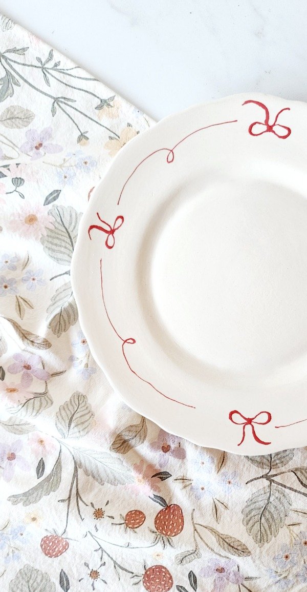 Plato para servir con lazos sobre relieve diámetro aprox 30 cm